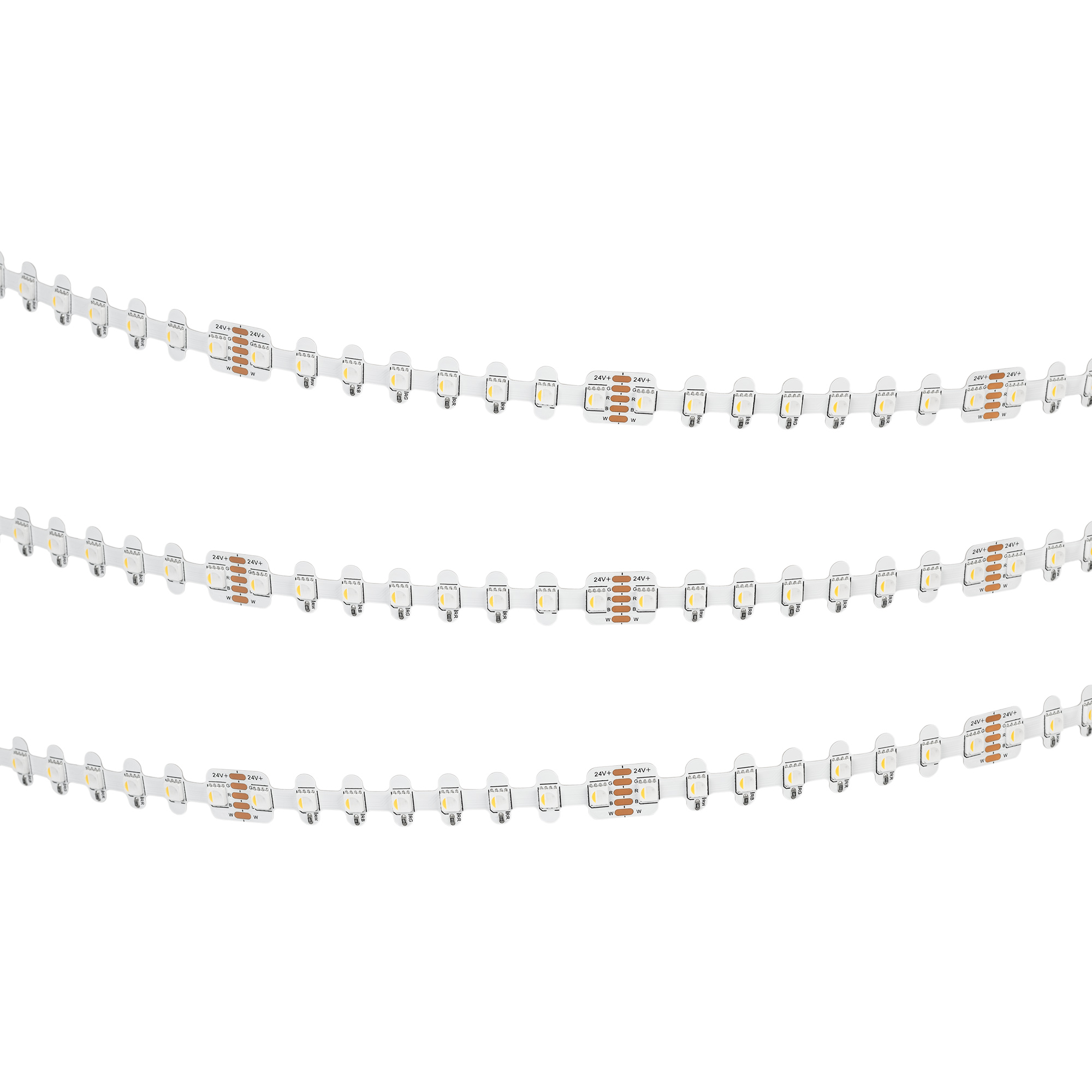 Светодиодная герметичная лента RZ-H96 с фигурной платой в форме волны, легко изгибается на плоскости, IP54 (NANO - защитное нанопокрытие). Светодиоды SMD 4040, 96 шт/м, белая плата шириной 12мм, скотч 3M. Цвет RGB + ДНЕВНОЙ 4000 K, индекс цветопередачи CRI>90, угол 120°. Питание 24V, мощность 12 Вт/м (60 Вт на 5 м). Размеры 5000x12x2.2 мм. Мин.отрезок 83.3 мм, 8 светодиодов. Цена за 1 м.