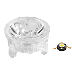 Одиночная линза цельная (с несъемным холдером) для мощного светодиода Emitter. Угол обзора: вертикальный 30°, прозрачная линза. Материал PMMA. Диаметр 23 мм, высота 14.1 мм.