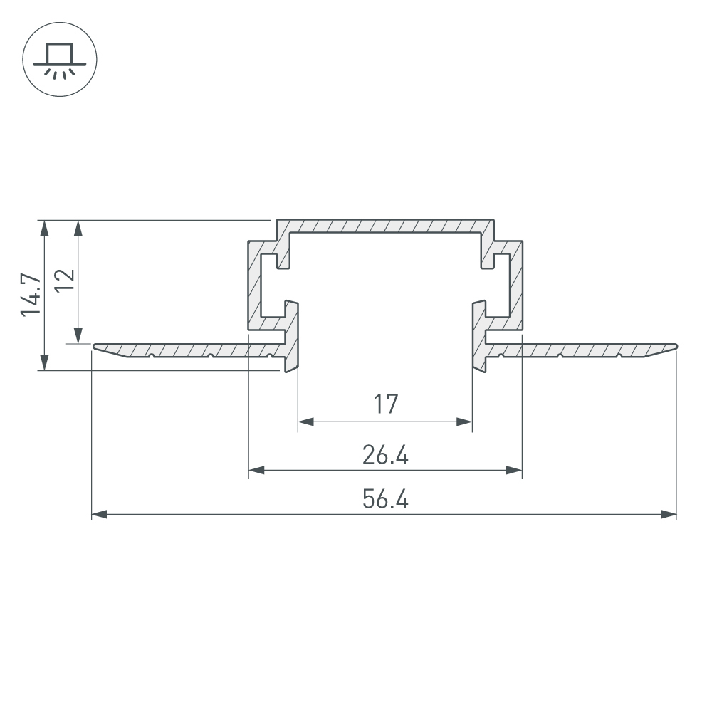 Под заказ от 50 м. Алюминиевый профиль-держатель, встраиваемый в гипсокартон. Для профиля PDS-D (он крепится за счёт специальных металлических скоб, идущих в комплекте). Скрытой установки, фланцы закрашиваются. Для создания световых полос без видимых алюминиевых частей. Габаритные размеры (L×W×H): 2000x56,4x14,7 мм. Заглушки и другие аксессуары приобретаются отдельно. Цена за 1 метр.