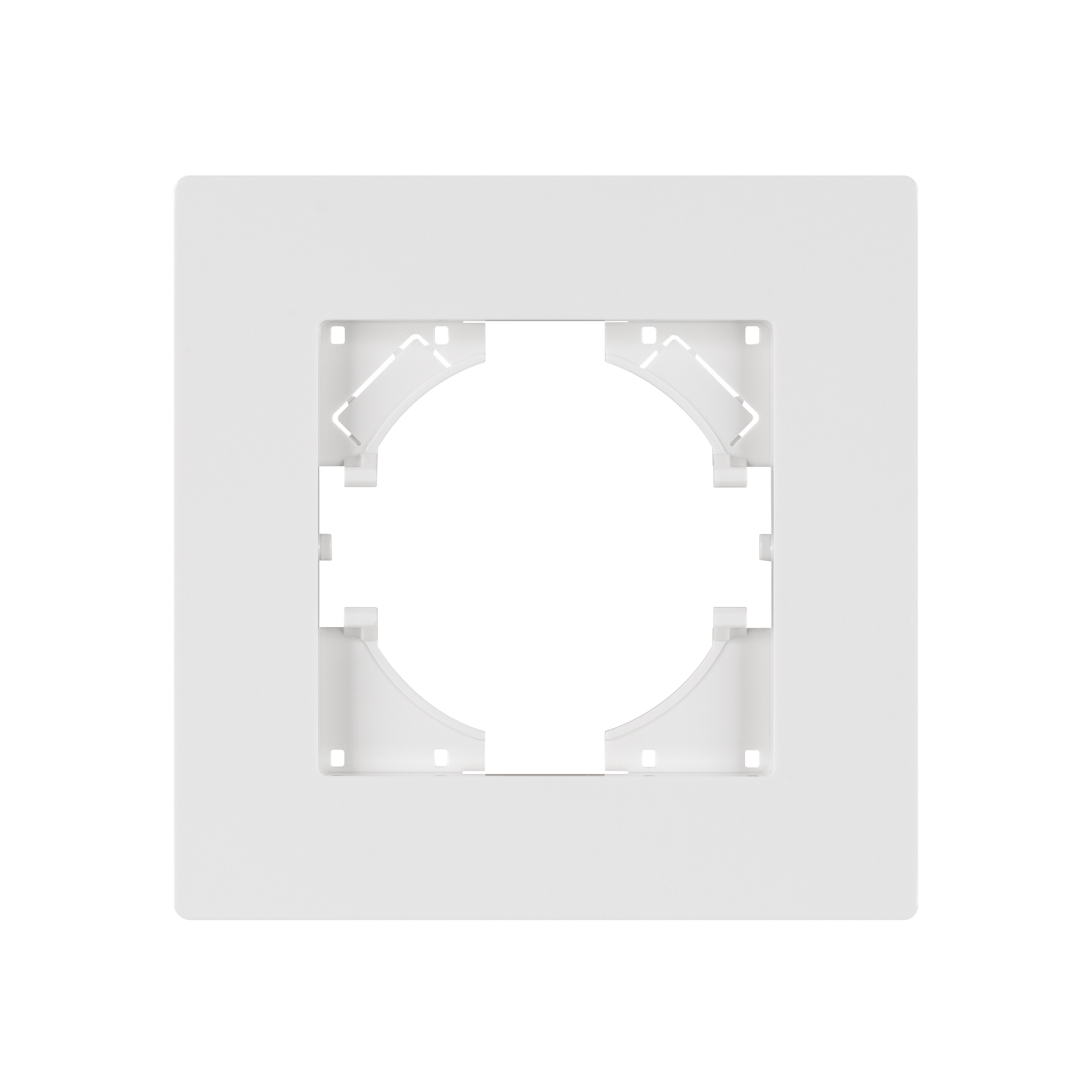 Рамка из серии PERIO изготовлена из высококачественного пластика. Корпус выполнен в белом цвете и матированным покрытием с высотой 7мм, что позволяет гармонично встроить в интерьер любого современного дизайн-проекта. Предназначена под встраиваемые механизмы.